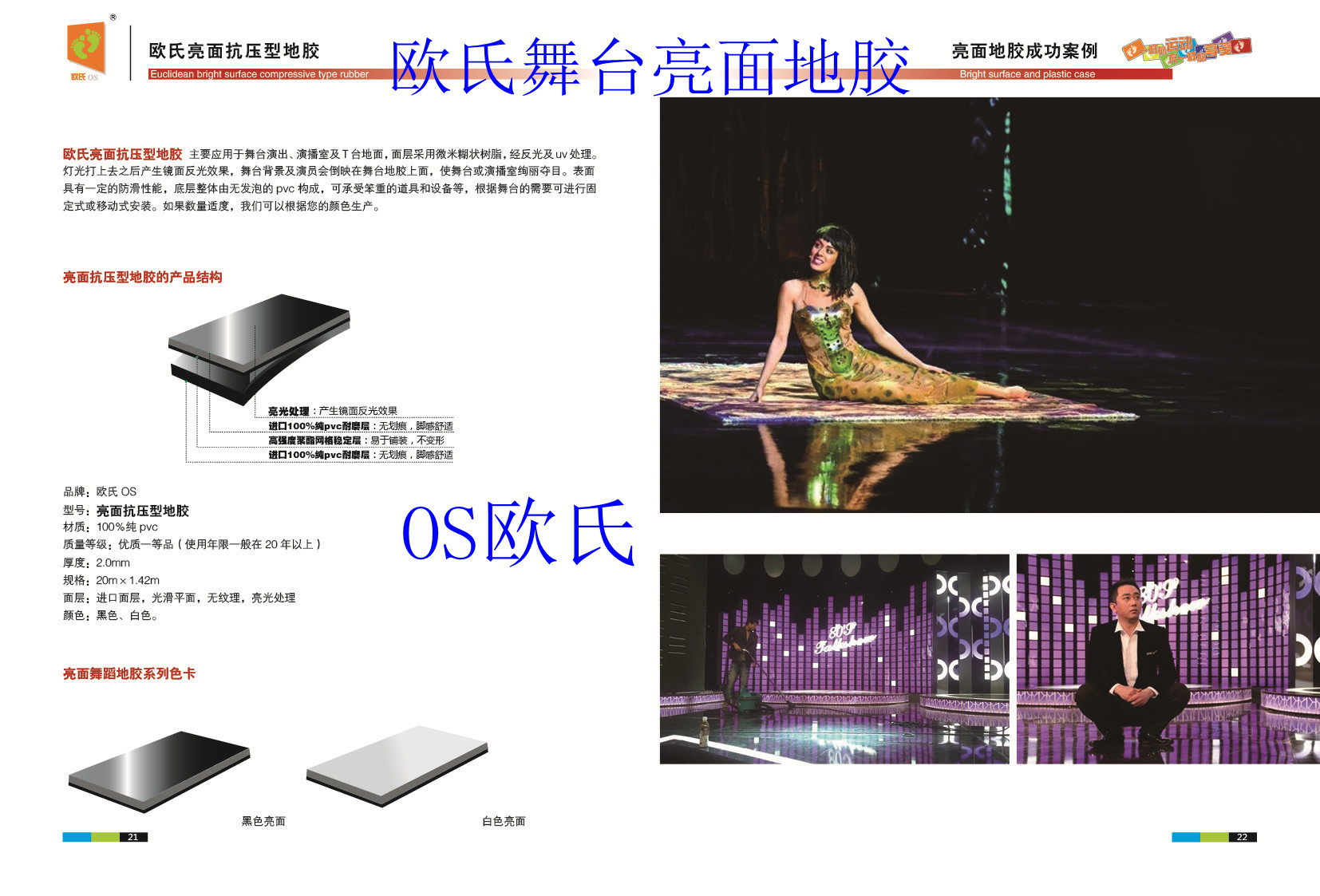 隨著文化生活水平的逐步提升,一些較大型的會展演出活動也慢慢增加起來,特別是話劇、歌劇、綜藝的舞臺節目對于地面裝飾材料的選擇一般是以個性化、絢麗為主,為了配合燈光效果,地面材料的使用一般是地毯,但是地毯顏色比較單一,不能隨心所欲的配合整體展示效果。于是我公司在原有專業舞蹈地板的基礎上開發出了專業的亮光效果舞臺地板,亮面舞臺地板的顏色可根據舞臺整體裝修效果進行定制,色彩豐富清亮醇正,具有無劃痕效果,還可以承受笨重的道具和設備等。